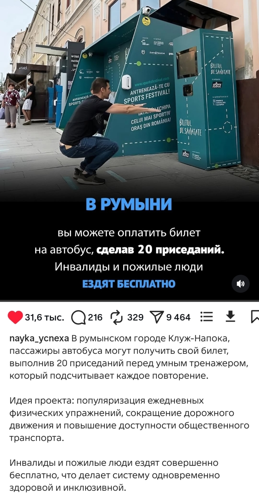 20 приседаний и проезд в общественном транспорте бесплатный.