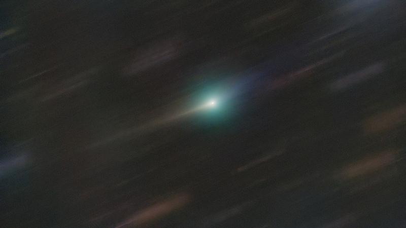 Изображение плотно сколлимированной струи антихвоста 3I/ATLAS. Обработано с использованием градиентного фильтра Ларсона-Секанины 15 декабря 2025 года. Автор: Тони Скармато