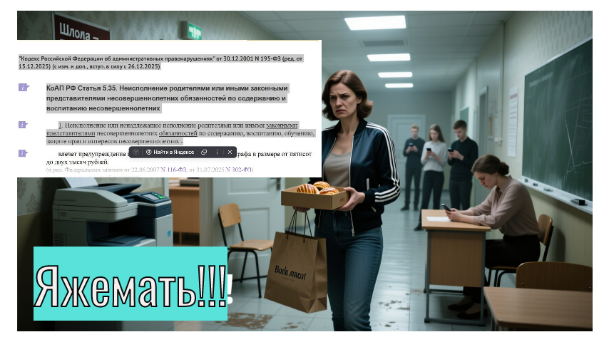 Мы платим налоги. Те самые, что исчезают в недрах «благоустройства», но всё же — школа стоит. Каждый её кирпич, каждый линолеум, каждый облезлый огнетушитель 90-х — это наше, родительское. Но как только речь заходит о цене поведения — вдруг «а почему бы и нет? Он же ещё маленький!».