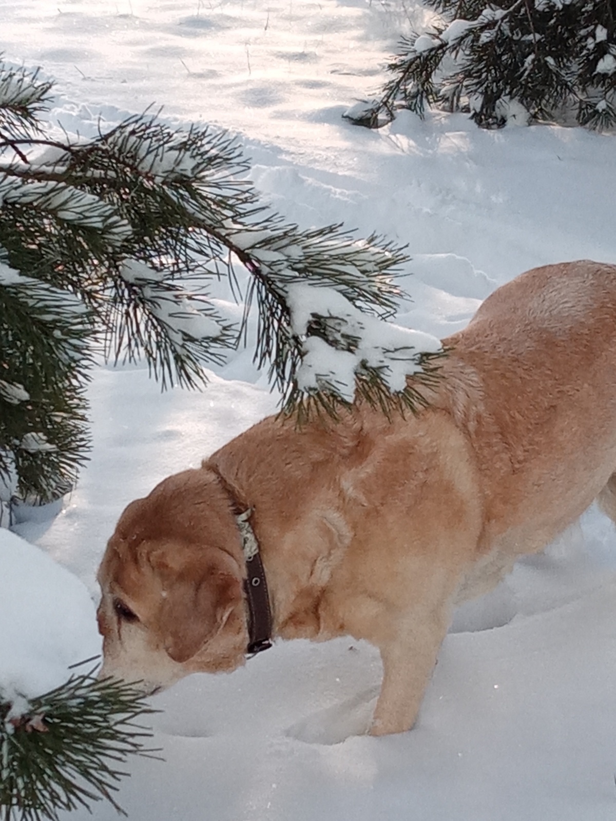 Фото автора. Утренняя прогулка с моей любимицей. До сих пор не пойму почему Лайма сует в снег свой нос, прямо до ушей и чего-то там вынюхивает под снегом. Смешная!