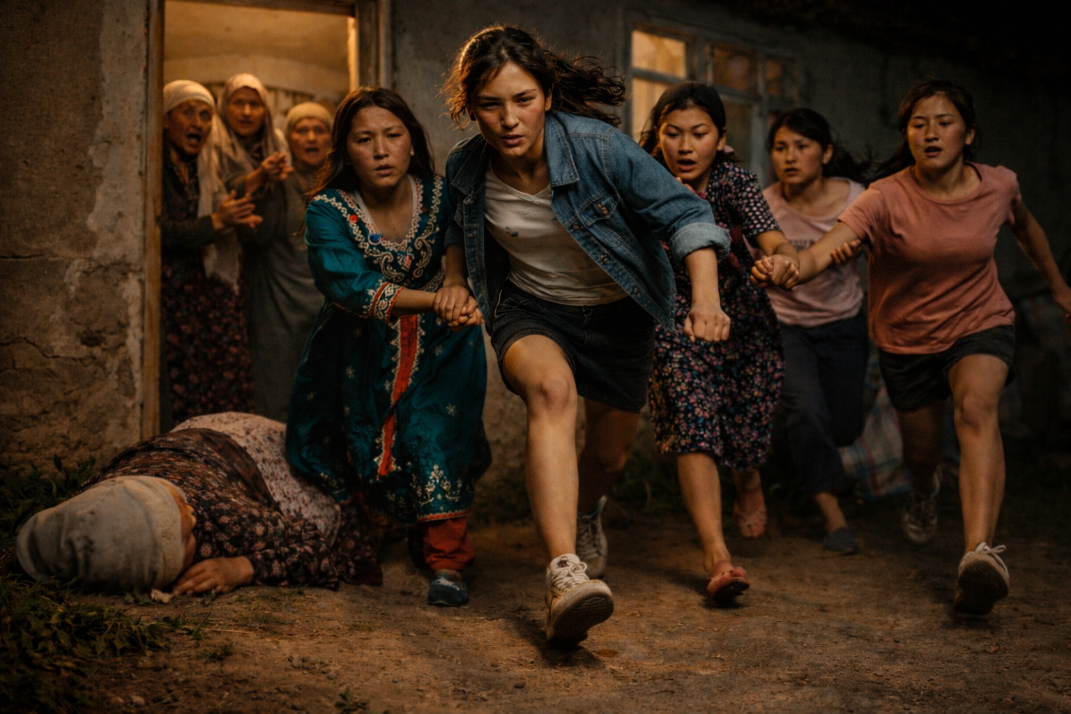 Начался странный, отчаянный танец-битва. Подруги расталкивали старух, хватали Айку, тянули к выходу, создавая своим телом живой щит. Пальцы впивались в рукава, в косы, в ткань платья. И вот, уже выход близко...