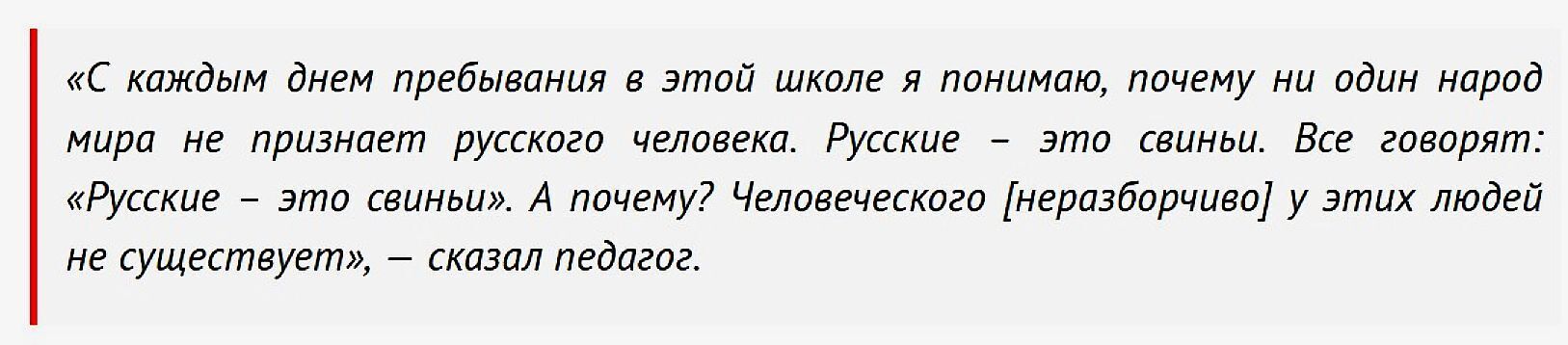 Ну вот, настоящее и циничное разжигание межнациональной розни добралось уже и до школ и, делает это не какой-нибудь малолетний раздолбай, а учитель, призванный нести детям светлое, доброе, вечное. А люди всё ещё наивно надеются, что днище уже пробито. Как бы не так...