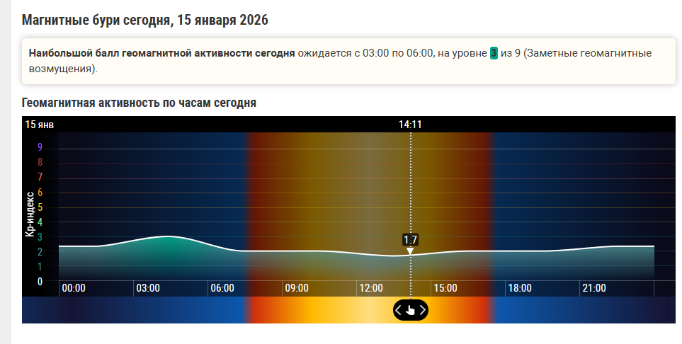 Что нас ждет 15 января 2026: надвигается ли магнитная буря?