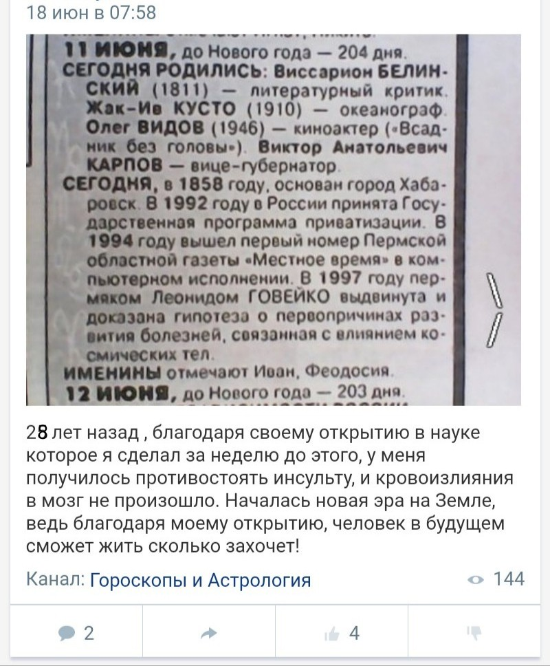 Я не зря подписался на автора этой статьи, а для того чтобы обратить на себя его внимание, ведь я ещё в прошлом веке доказал, что у астрологии есть научная основа! В ином случае, меня не было бы уже в живых...