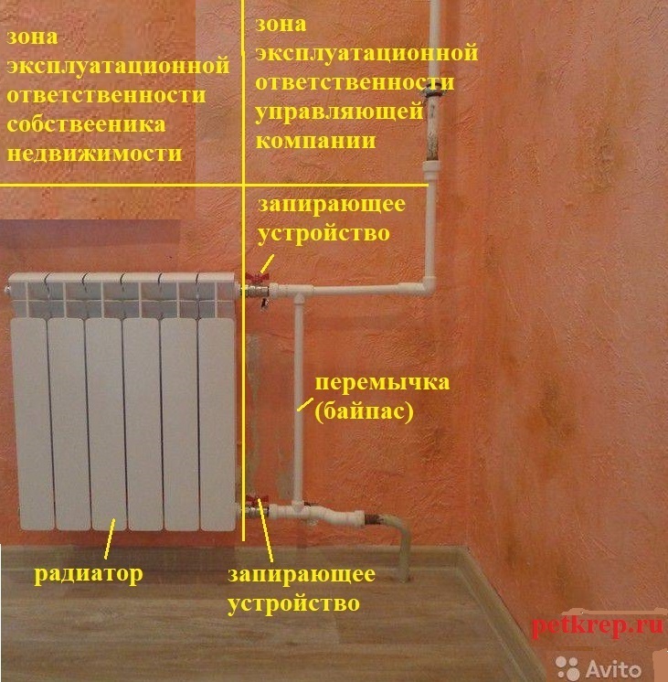 Границы разграничения зон эксплуатационной ответственности между собственником и управляющей компанией не всегда просто определить. При вертикальной разводке стояков отопления вышеуказанные границы можно установить в соответствии с прилагаемой копией схемы.