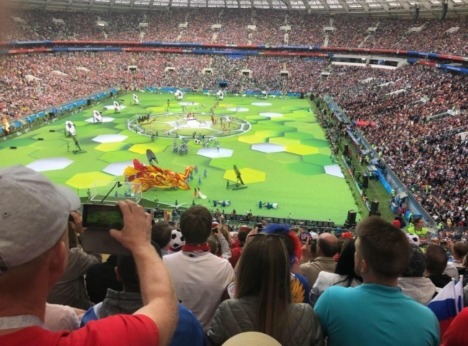 Так как мы живем в Москве, а матч открытия проходил на стадионе Лужники, нам не пришлось никуда ехать... разве что добраться в центр на метро 😄😄😄