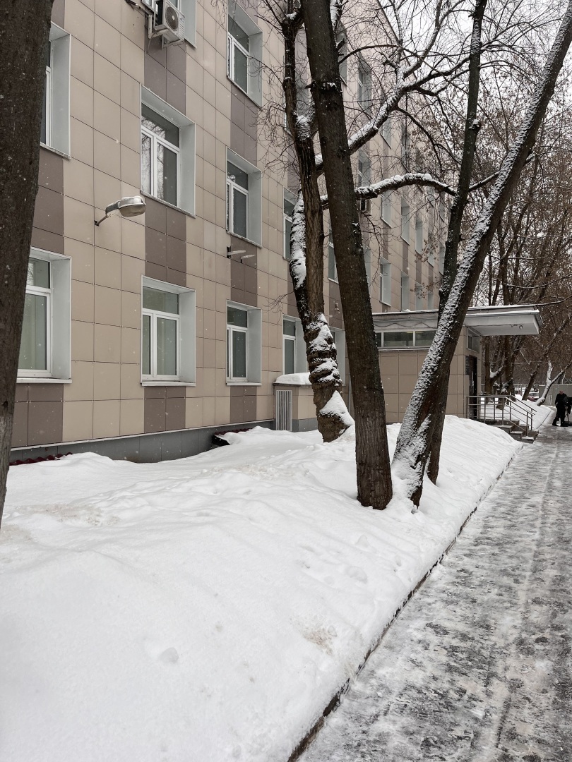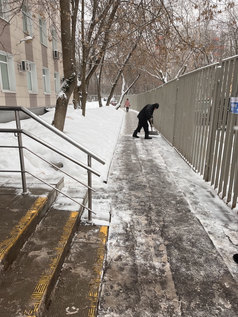 Да, в целом территория у поликлиники вполне чистая и даже освобождена от снега и наледи. Работа у дворника серьезная, в зимний период точно!