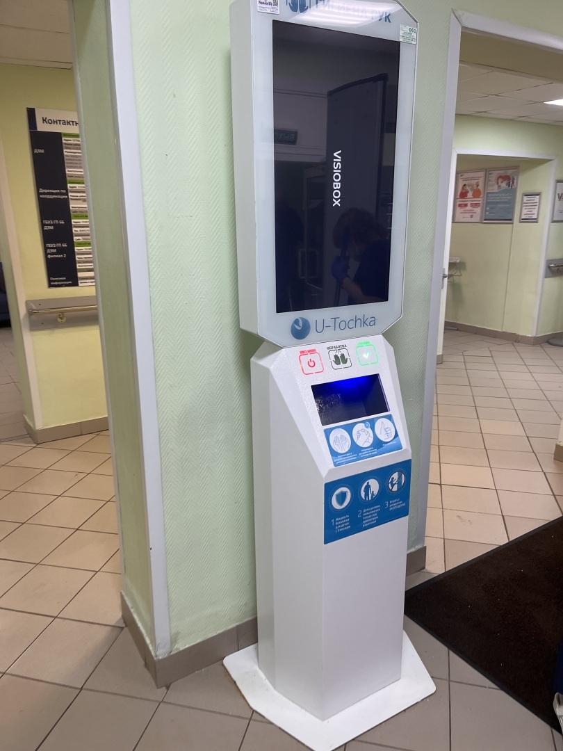 К счастью, осталась одна из бабушек в очереди, пока я ходила на первый этаж и ждала распечатку талончика – почти моя очередь «подошла». Кстати, на первом этаже стоит вот такая штука - типа санитайзер для рук. Но что-то особо никто не пользуется.
