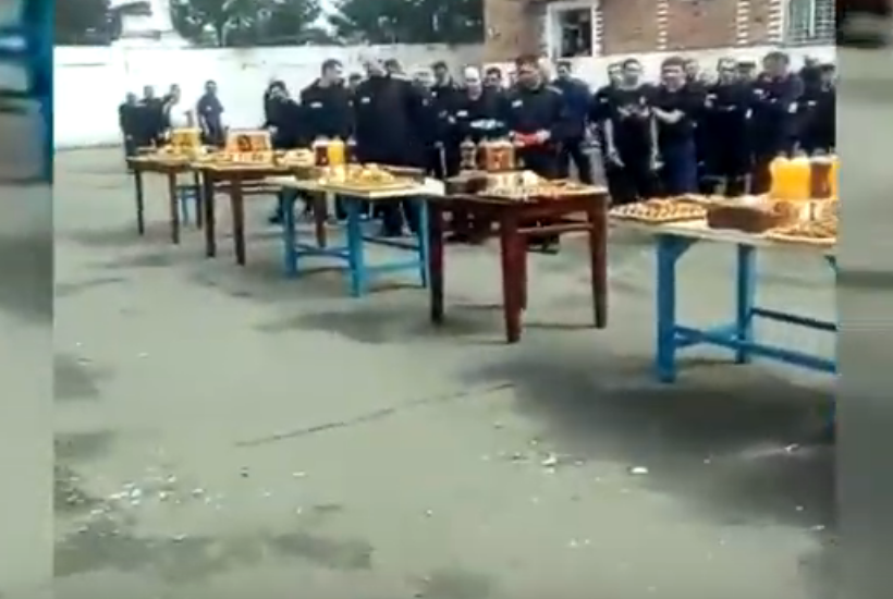 На записи видно, как на плацу стоят столы с едой и прохладительными напитками. Один из заключенных перечисляет тех криминальных авторитетов, кто накрыл их. Затем поздравляет всех с Пасхой и желает здоровья. В конце он произносит фразу «Жизнь ворам!», а остальные отвечают ему: «Вечно!».