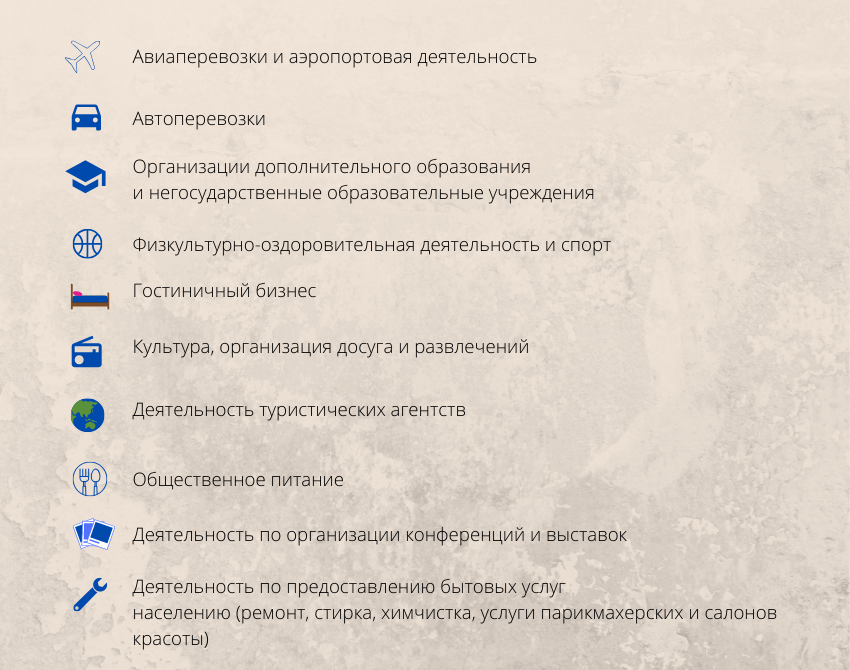 Чиновники предусмотрели дополнительные меры и для видов бизнеса, который в особей мере пострадали от пандемии коронавируса в России.