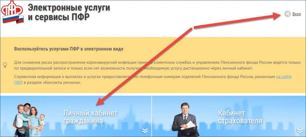 1)Зайдите в личный кабинет по адресу: https://es.pfrf.ru/. Логин и пароль вводите от учетной записи на Госуслугах.