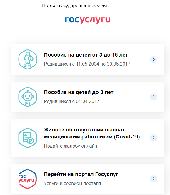 https://posobie16.gosuslugi.ruМожно пройти по прямой ссылке, можно также попасть через главную сайте Госуслуг, выбрав соответствующий раздел.