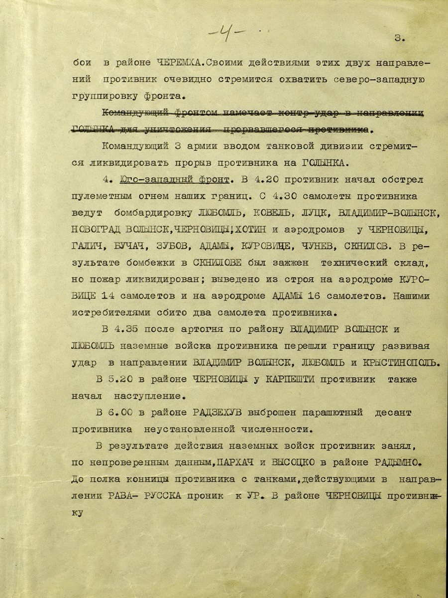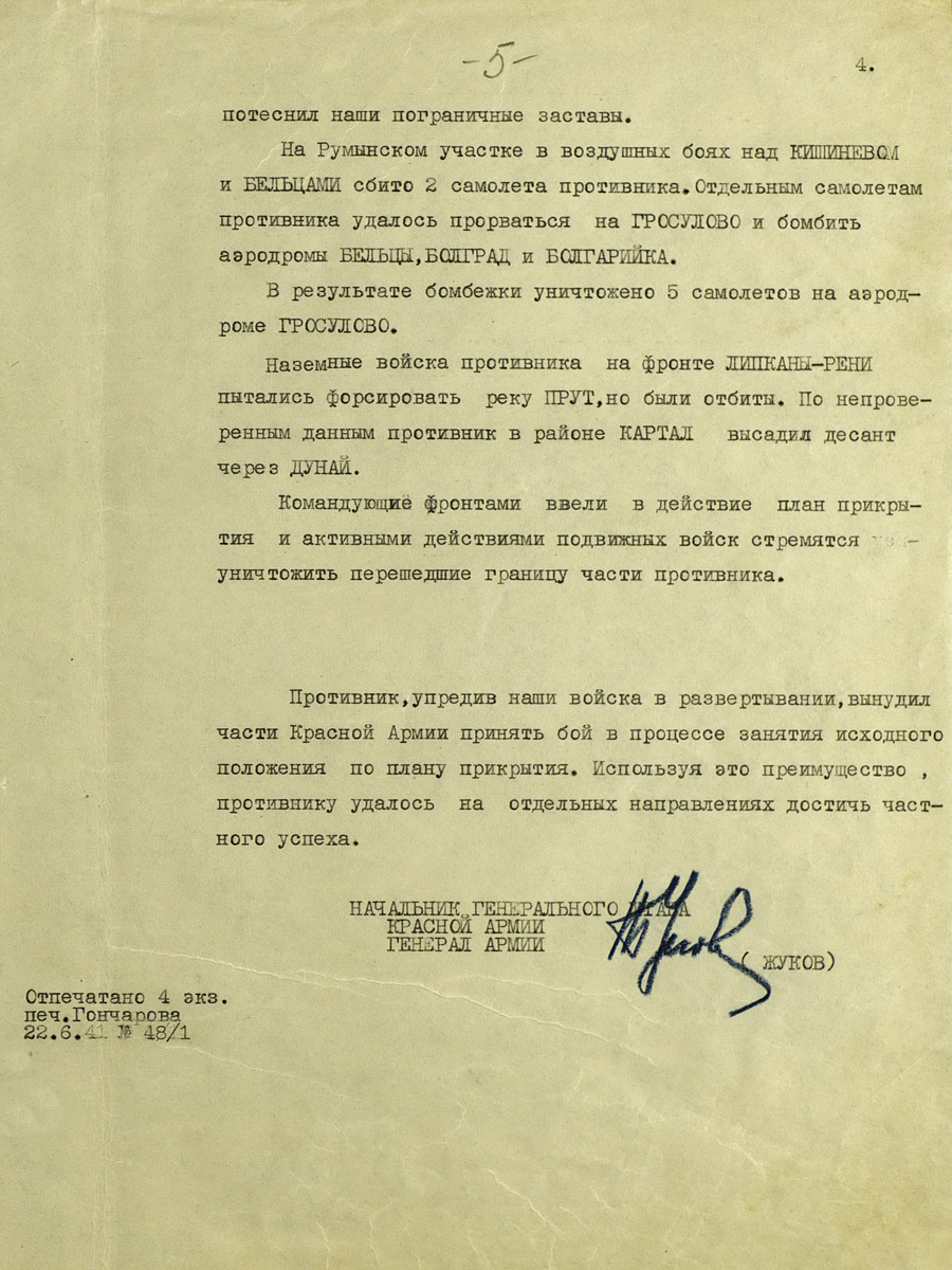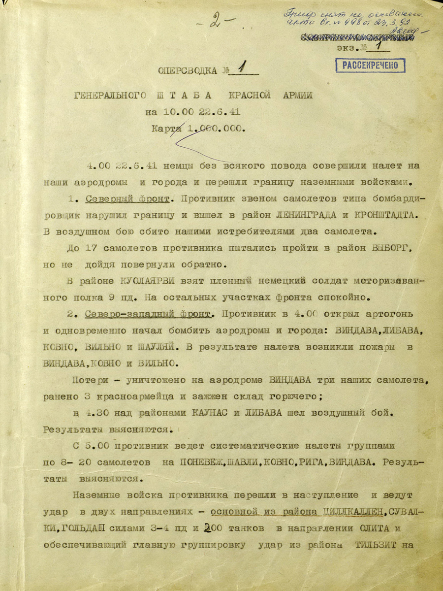 Оперативная сводка №1 ГЕНЕРАЛЬНОГО ШТАБА Красной армии на 10.00 22.06.1941 года от Жукова