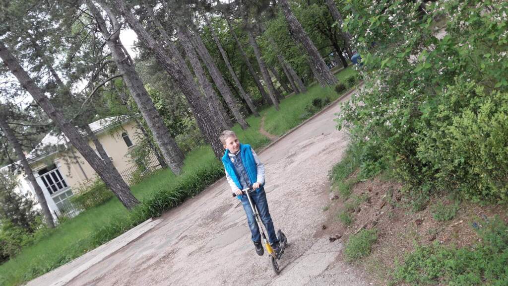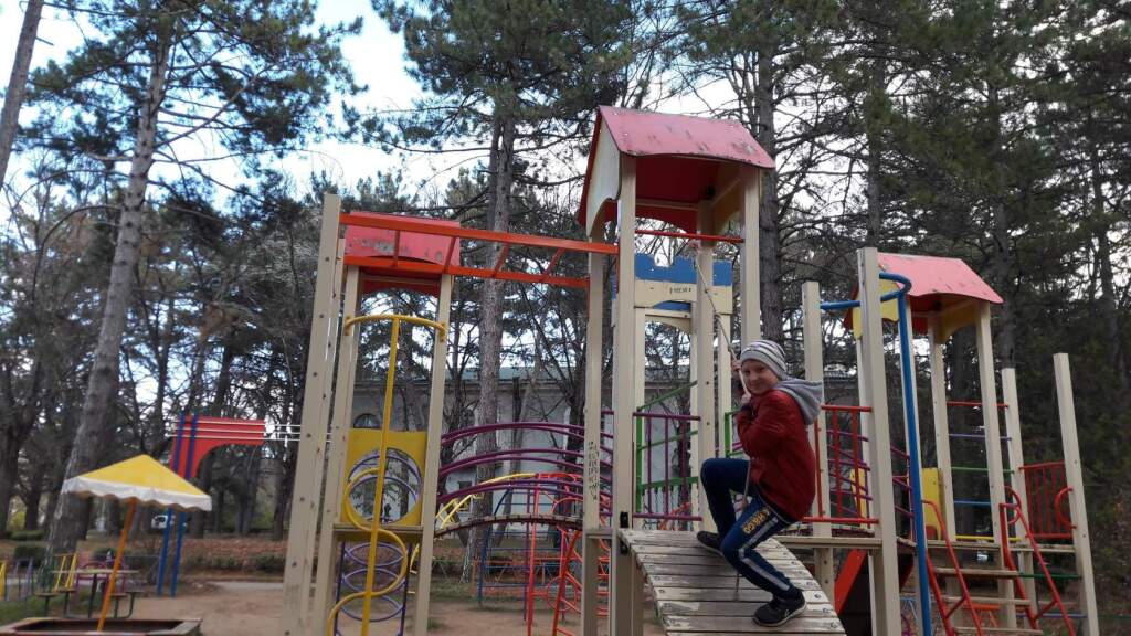С начало ребенок себя реализовал себя на всех видах площадках, ну а затем пошли погулять по лесу.