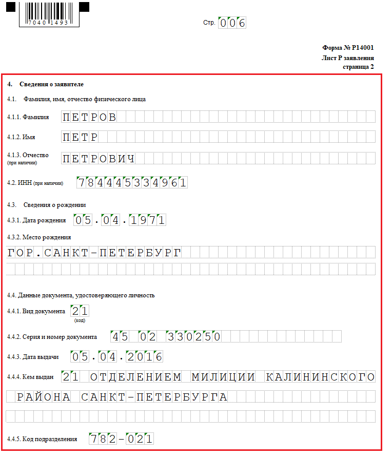 Шаг 5. На листах 2 и 3 заполняются подробно личные данные заявителя.