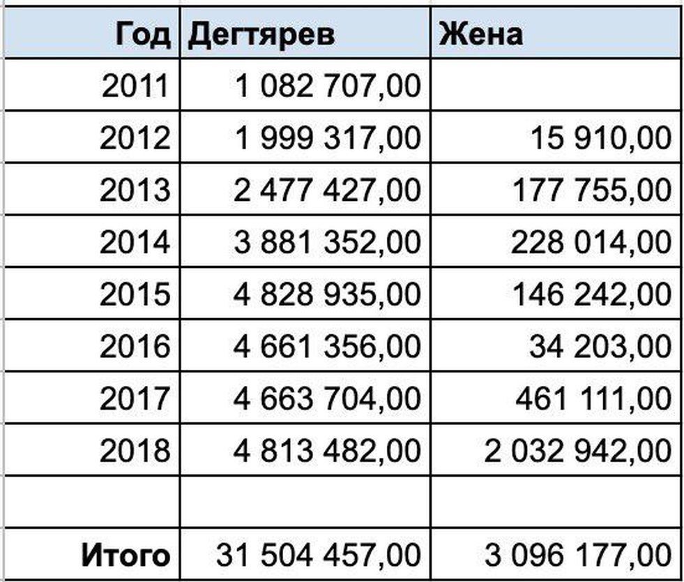 Папа с мамой у Миши простые врачи, жена тоже не миллионщица. Вот их совокупные доходы за время депутатства Дегтярёва: