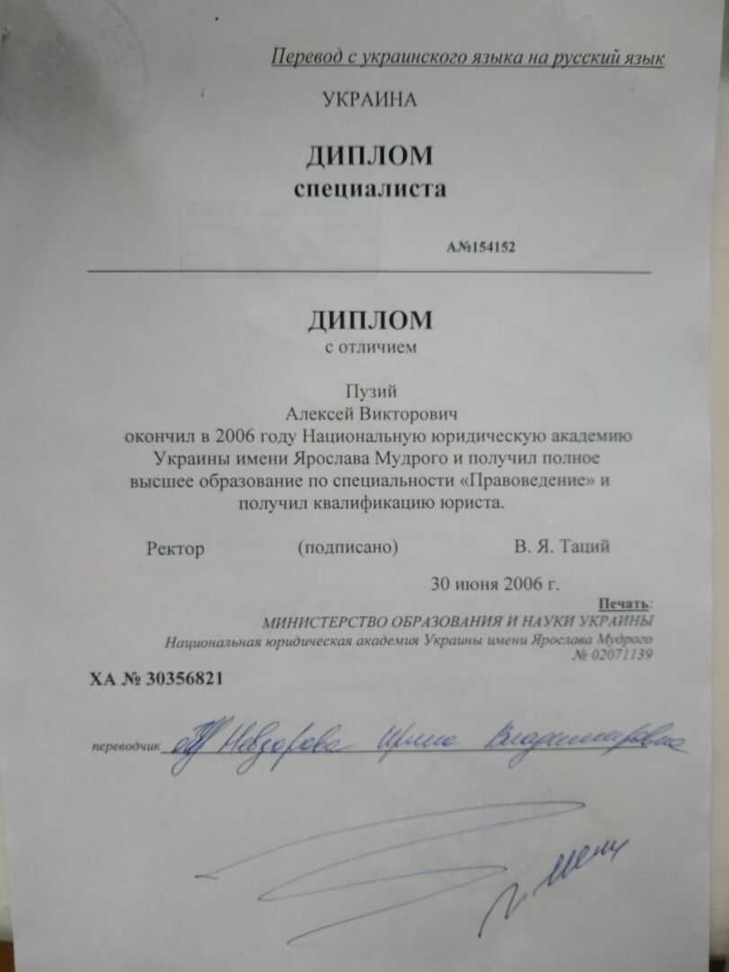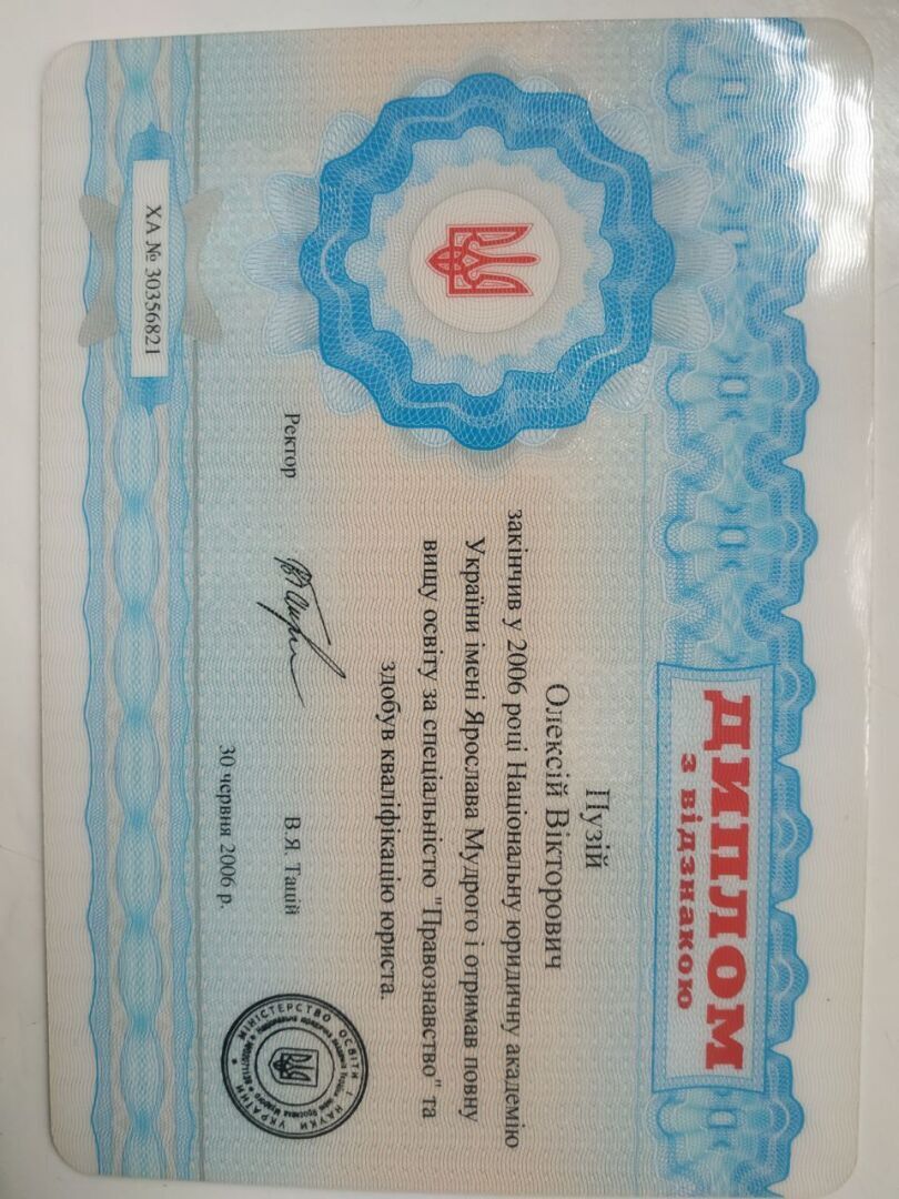 Высшее•Национальный юридический университет имени Ярослава Мудрого•Юридический•Харьков•год окончания: 2006