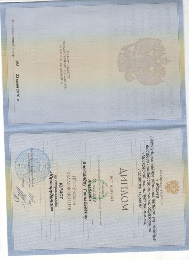 Высшее•Московский институт экономики, политики и права•Юриспруденция•Москва•год окончания: 2010
