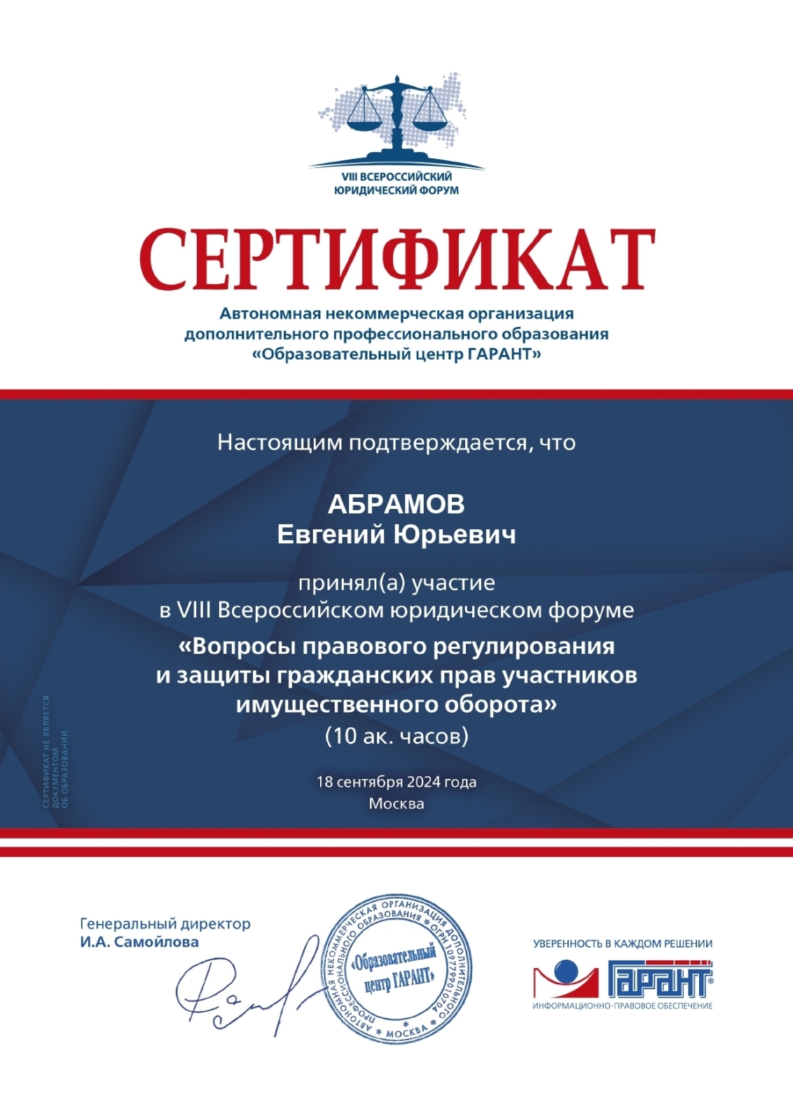 Юрист Абрамов Евгений Юрьевич, Таганрог - отзывы