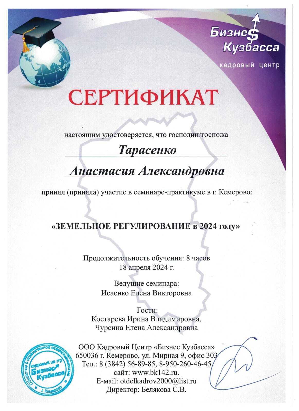 Тарасенко Анастасия Александровна