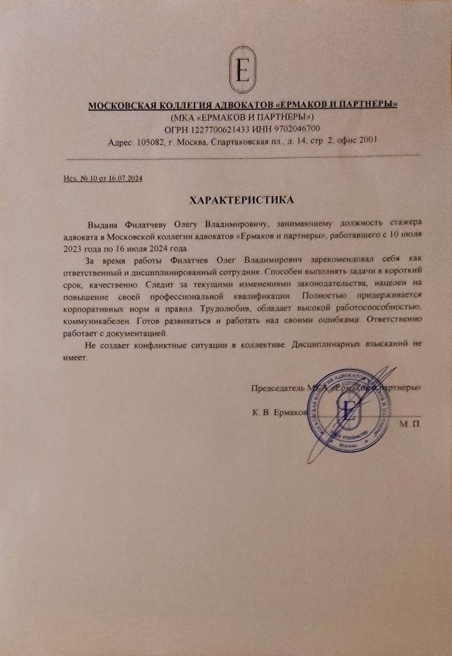 Юрист Филатчев Олег Владимирович, Москва - отзывы