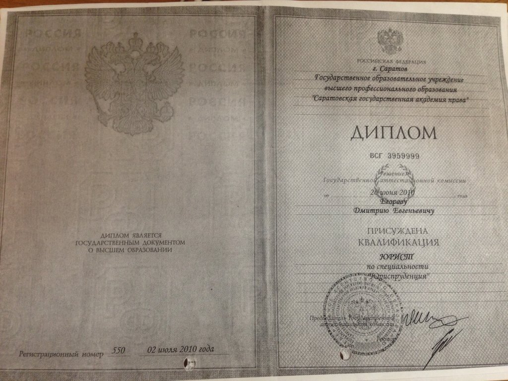 Высшее•Филиал Саратовской государственной академии права в г. Астрахани•Юриспруденция•Астрахань•год окончания: 2010