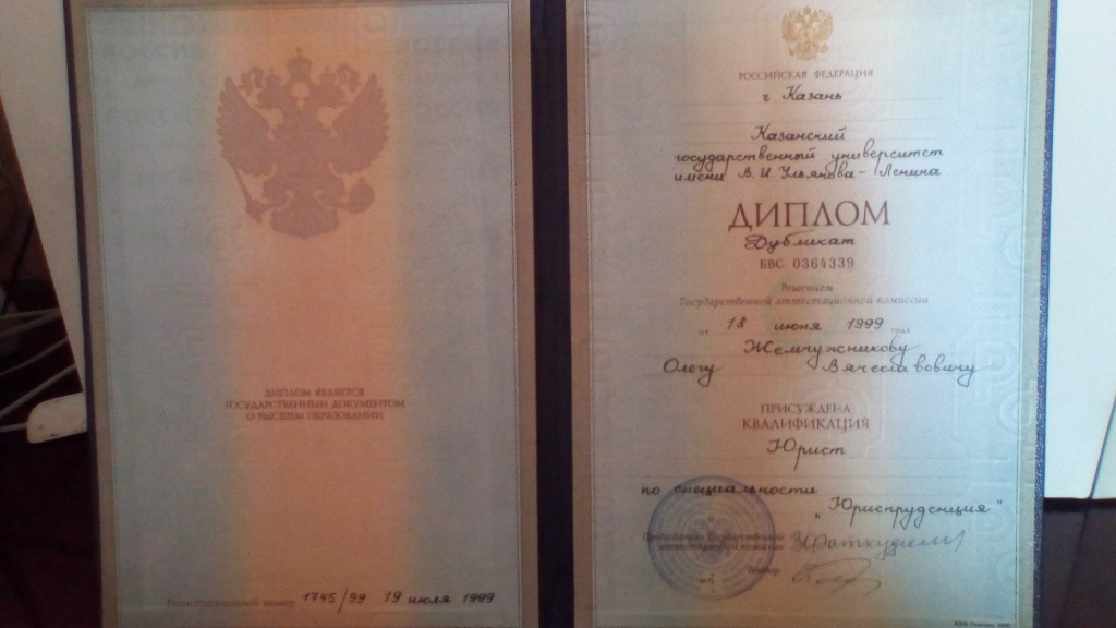 Высшее•Казанский (Приволжский) федеральный университет•Юриспруденция (Юрист)•Казань•год окончания: 1999