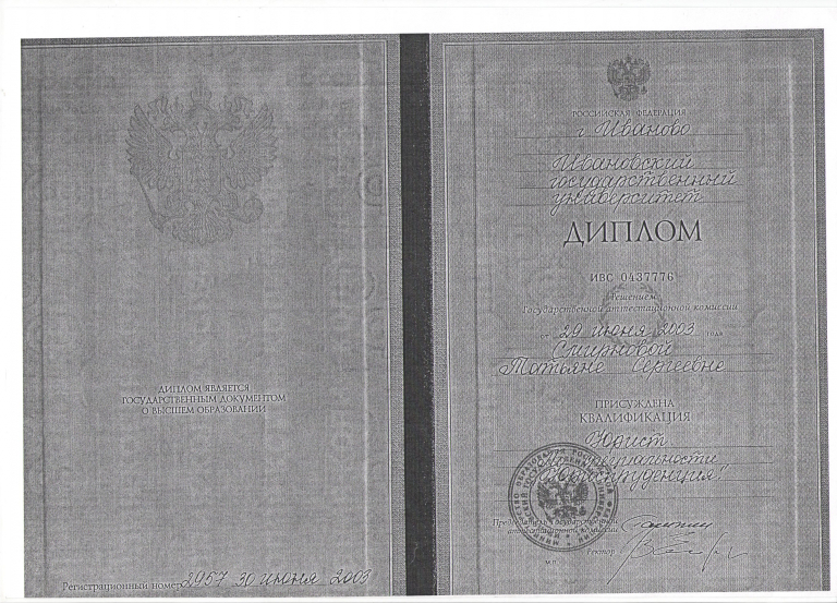 Высшее•Ивановский государственный университет•Юриспруденция (Юрист)•Иваново•год окончания: 2003