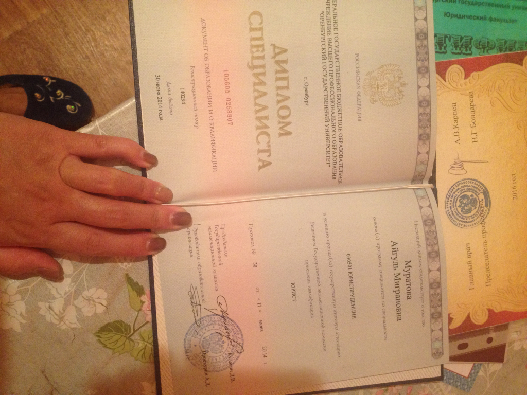 Высшее•Оренбургский государственный университет•Юриспруденция (Юрист)•Оренбург•год окончания: 2014