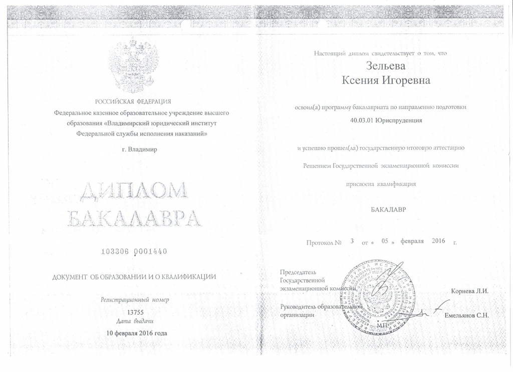 Высшее •Владимирский юридический институт Федеральной службы исполнения наказаний•Юриспруденция (Юрист)•Владимир•год окончания: 2016