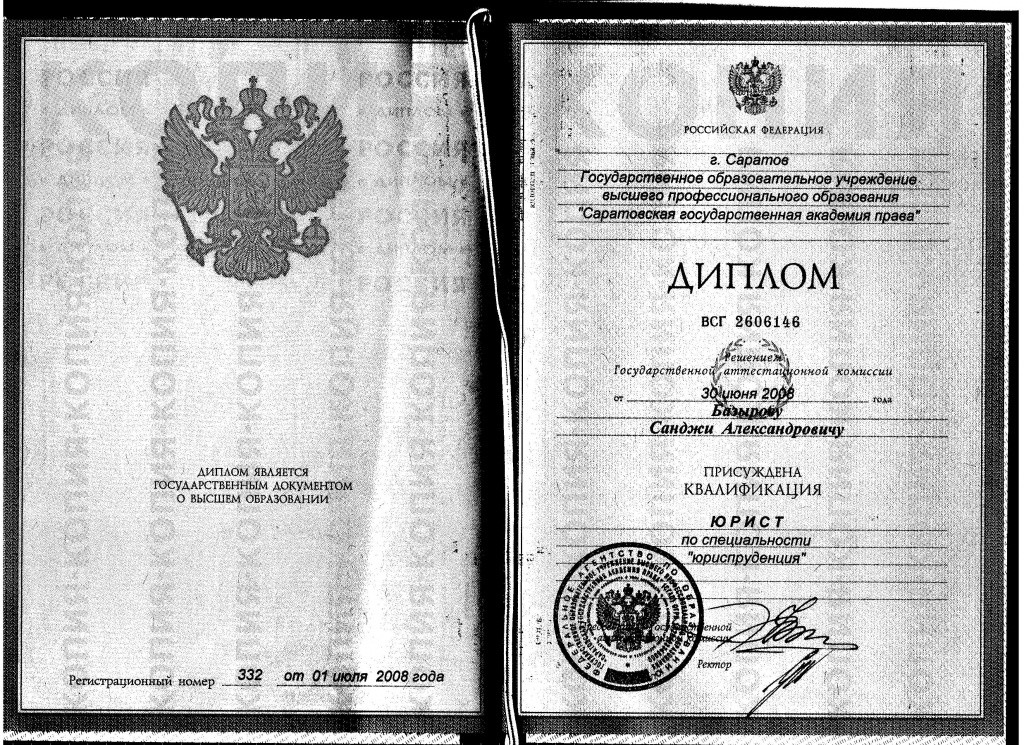 Высшее•Поволжский (г. Саратов) юридический институт (филиал) Российской правовой академии Министерства юстиции Российской Федерации•Юриспруденция (Юрист)•Саратов•год окончания: 2008
