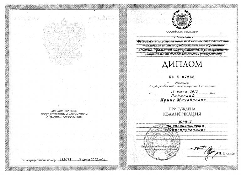 Высшее•Челябинский государственный университет•Юриспруденция (юрист)•Челябинск•год окончания: 2012