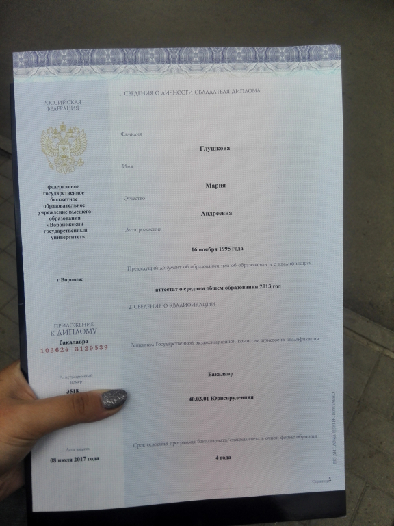 Высшее•Воронежский государственный университет•Юридический (Юрист)•Воронеж•год окончания: 2017