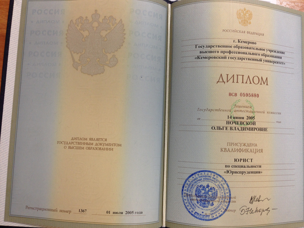 Высшее•Кемеровский государственный университет•Юриспруденция (Юрист)•Кемерово•год окончания: 2005