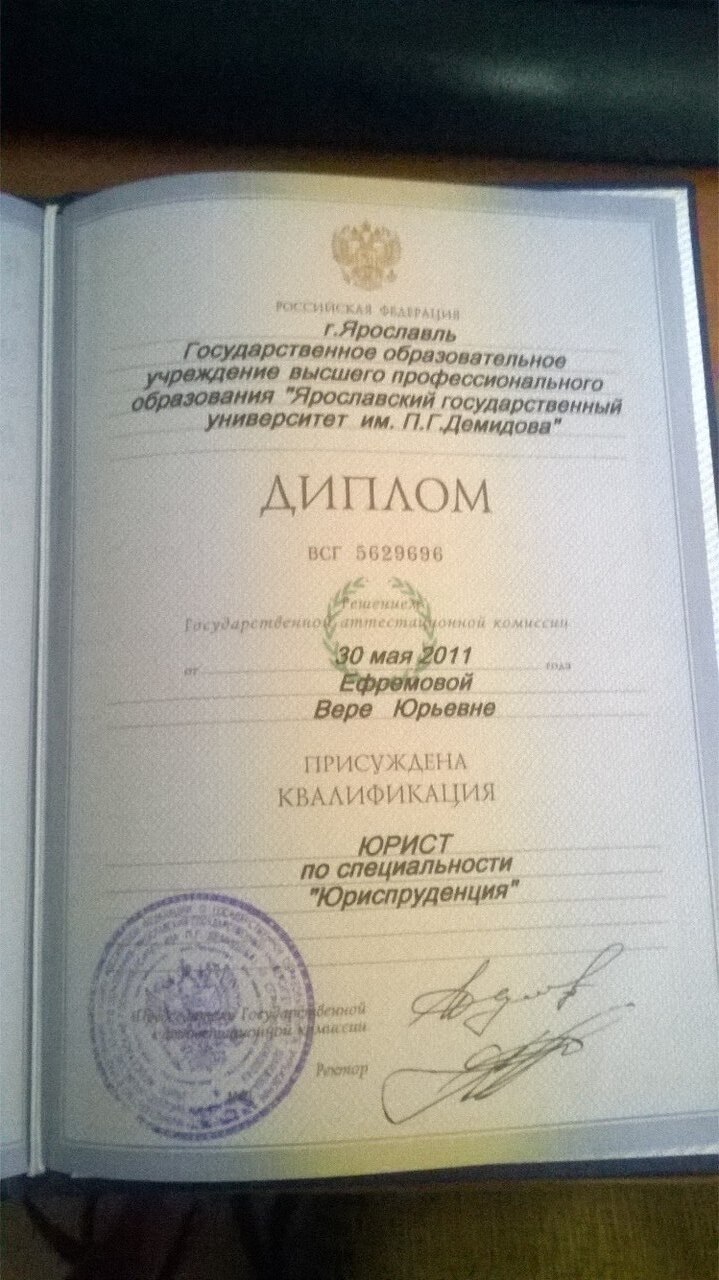 Высшее•Ярославский государственный университет им. П.Г. Демидова•Юриспруденция (Юрист)•Ярославль•год окончания: 2011