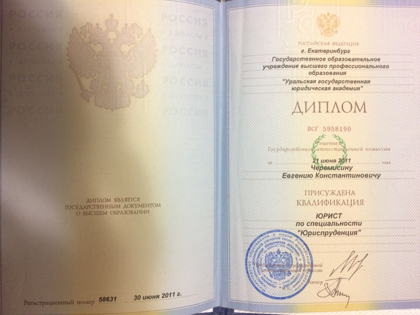 Высшее•Уральская государственная юридическая академия•Юриспруденция (Юрист)•Екатеринбург•год окончания: 2011
