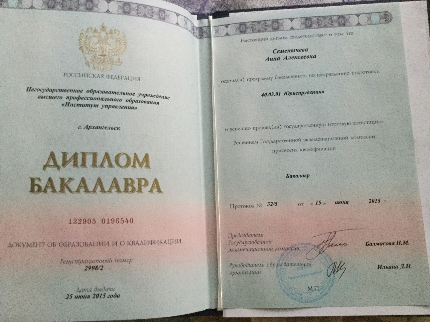 Высшее•Ярославский филиал Института управления (г. Архангельск)•Юриспруденция•Ярославль•год окончания: 2015