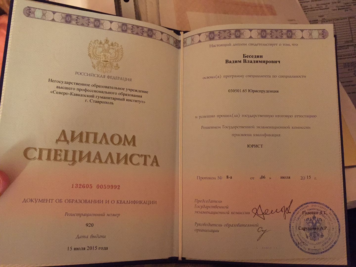 Высшее•Северо-кавказский федеральный университет•Юридический (юрист)•Ставрополь•год окончания: 2015