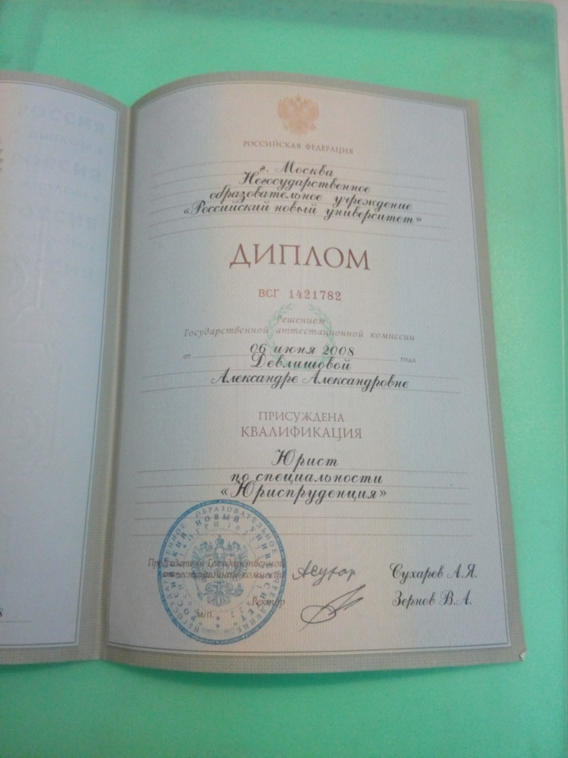 Высшее•Воронежский государственный университет•Юриспруденция (Юрист)•Воронеж•год окончания: 2008