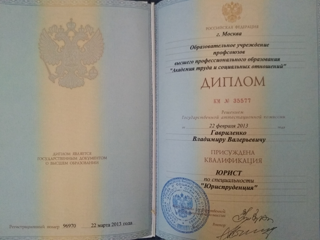 Высшее•Академия труда и социальных отношений•Юриспруденция (Юрист)•Москва•год окончания: 2013
