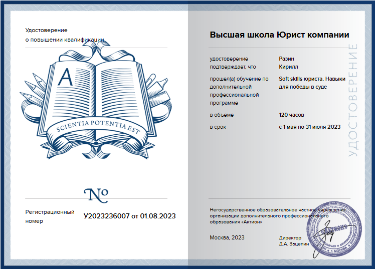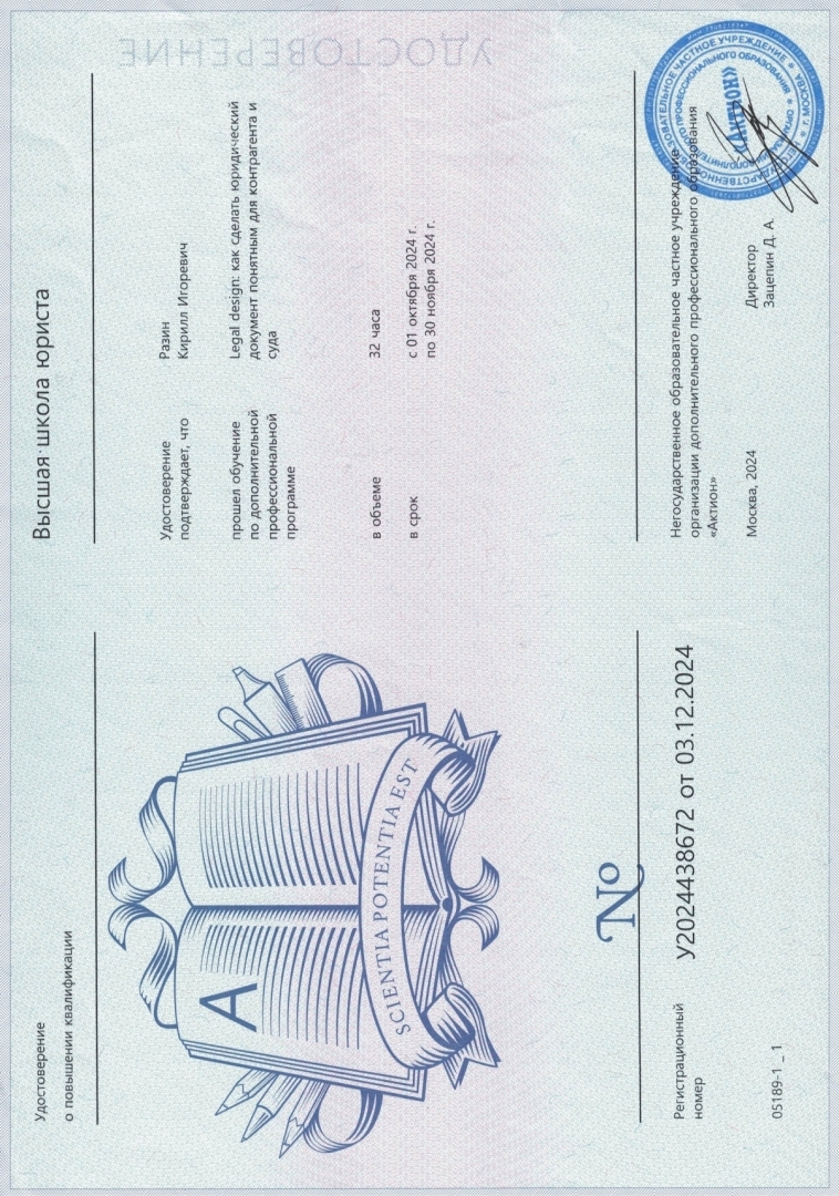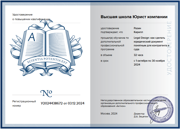 Благодарю Вас за Вашу работу, отзывчивость и профессионализм в решении важных вопросов!