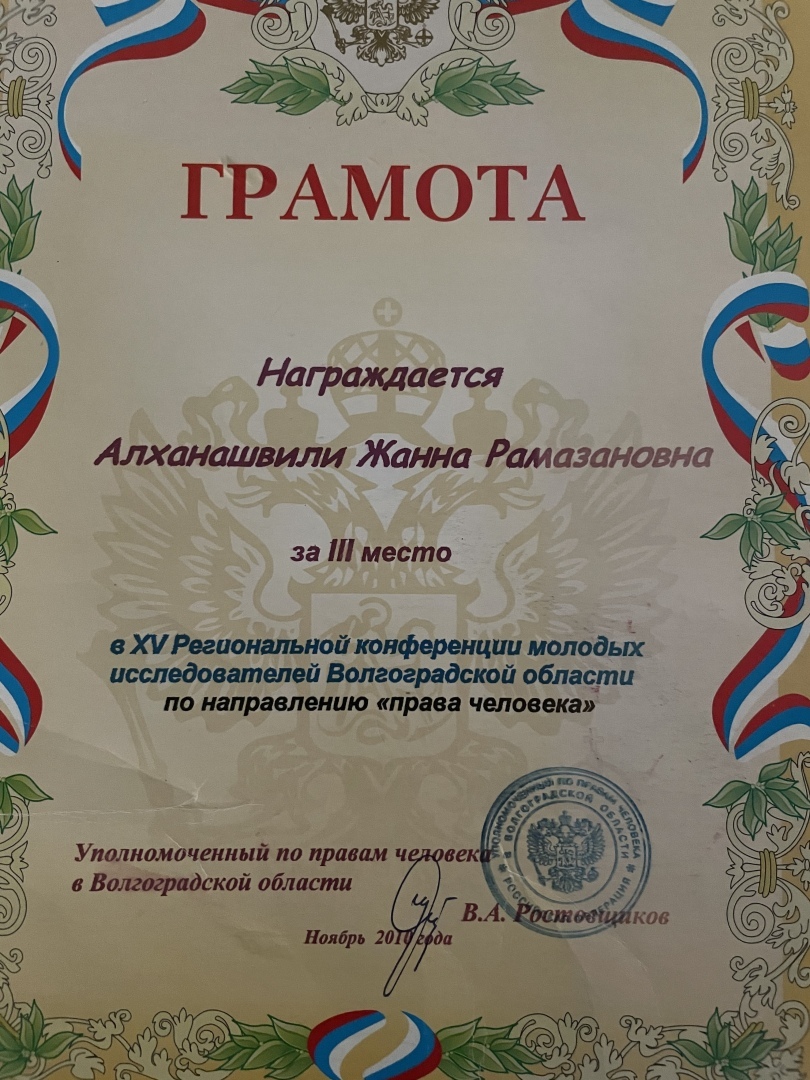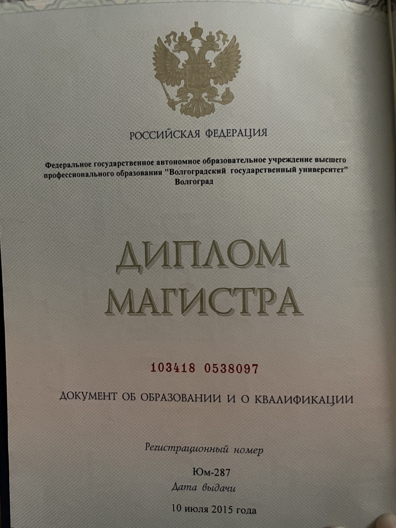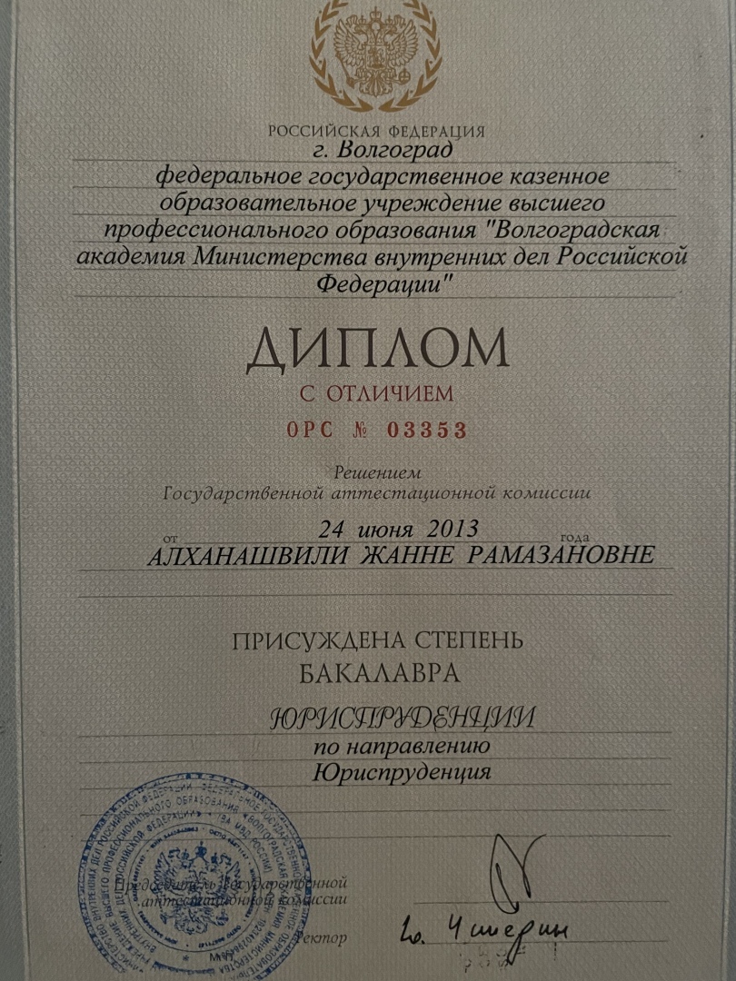 Высшее•Волгоградская академия Министерства внутренних дел Российской Федерации•Юриспруденция•Волгоград•год окончания: 2015